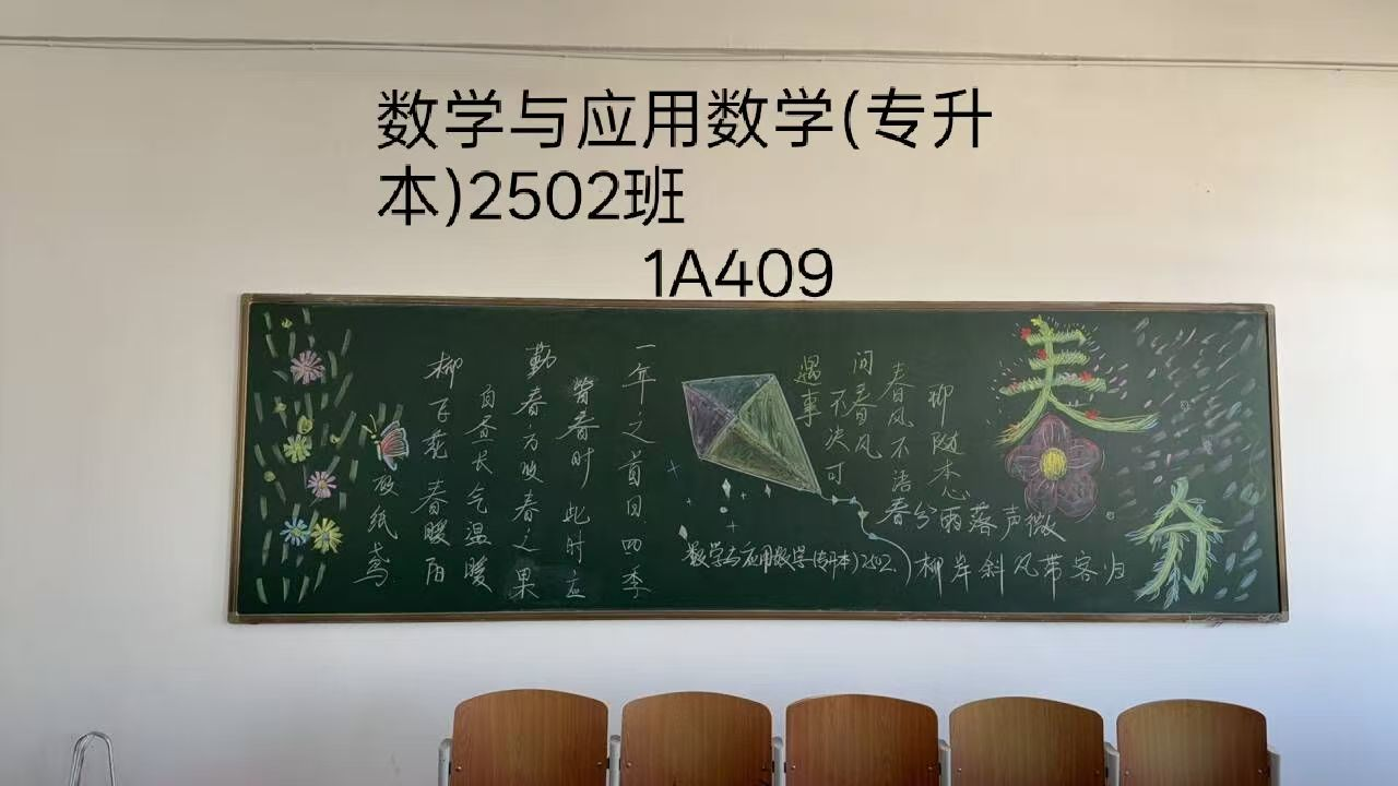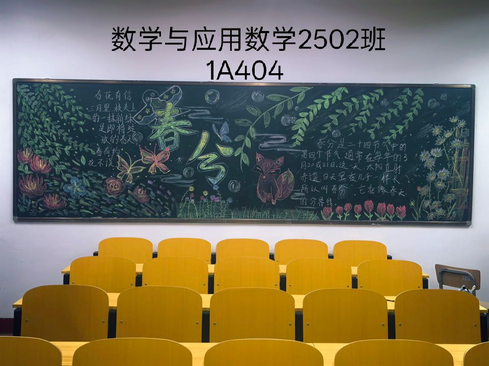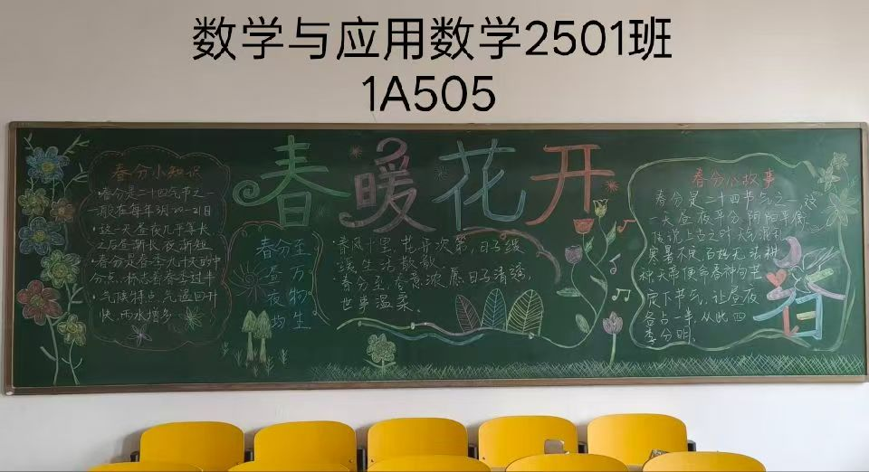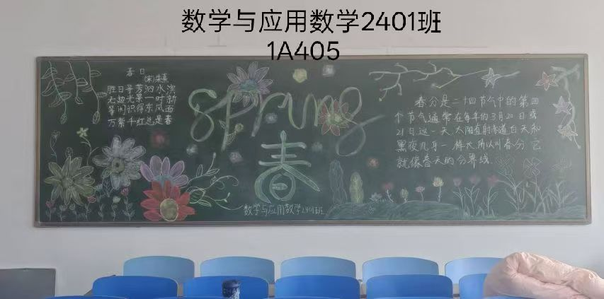 春风拂过校园,吹醒了枝头的新芽,染绿了校园的角落。数学与人工智能系开展了一场融合传统与现代的黑板报创作活动。同学们踊跃参与,绘制出一幅幅生动的画作。此刻,让我们一同走进这些图文并茂的黑板报,感受数学与代码之外的人文温度与创意吧!